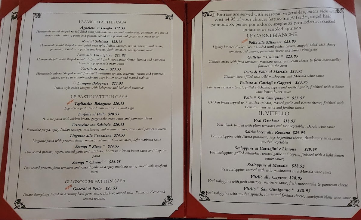 Chianti Ristorante Italiano Menu